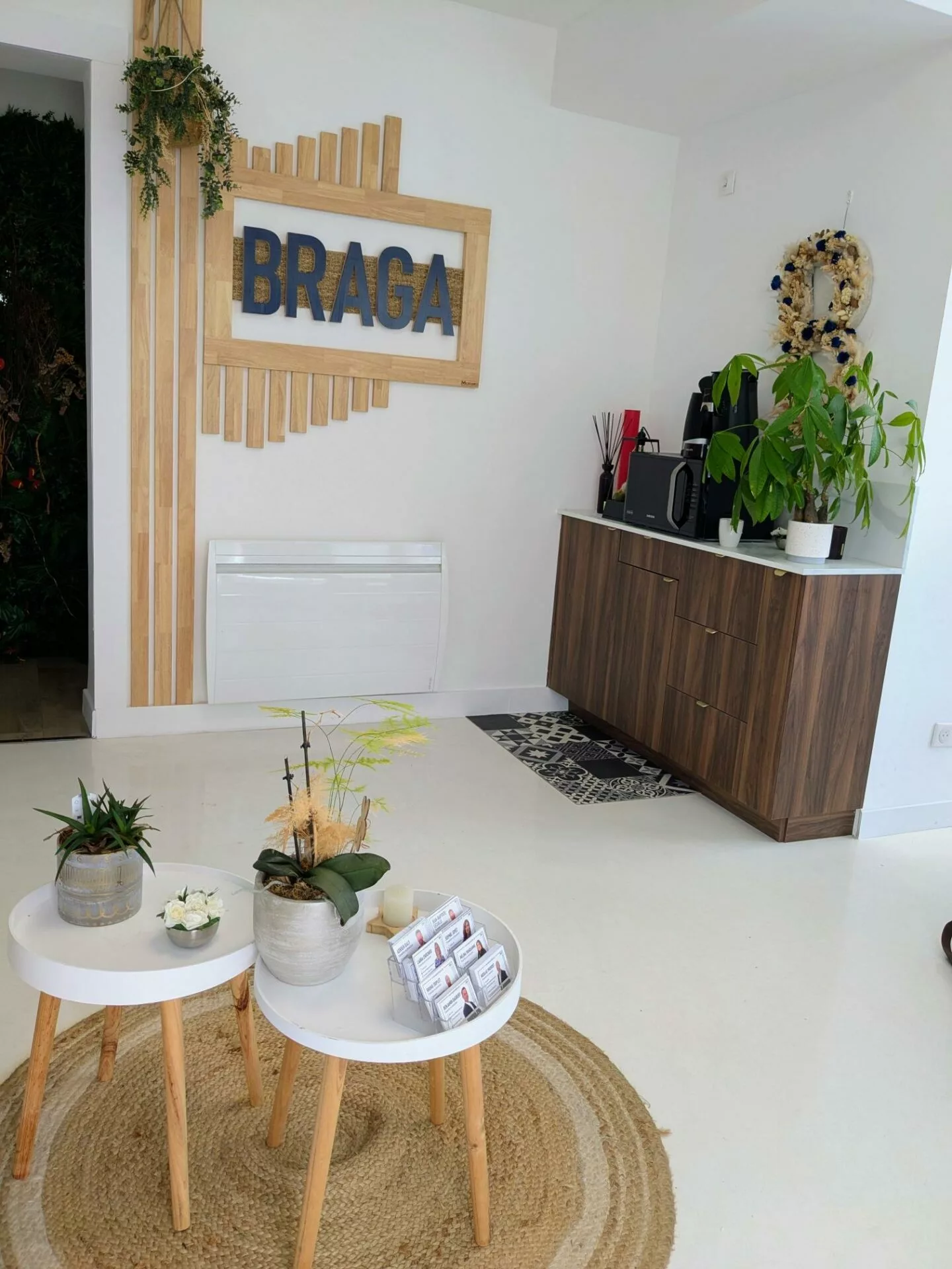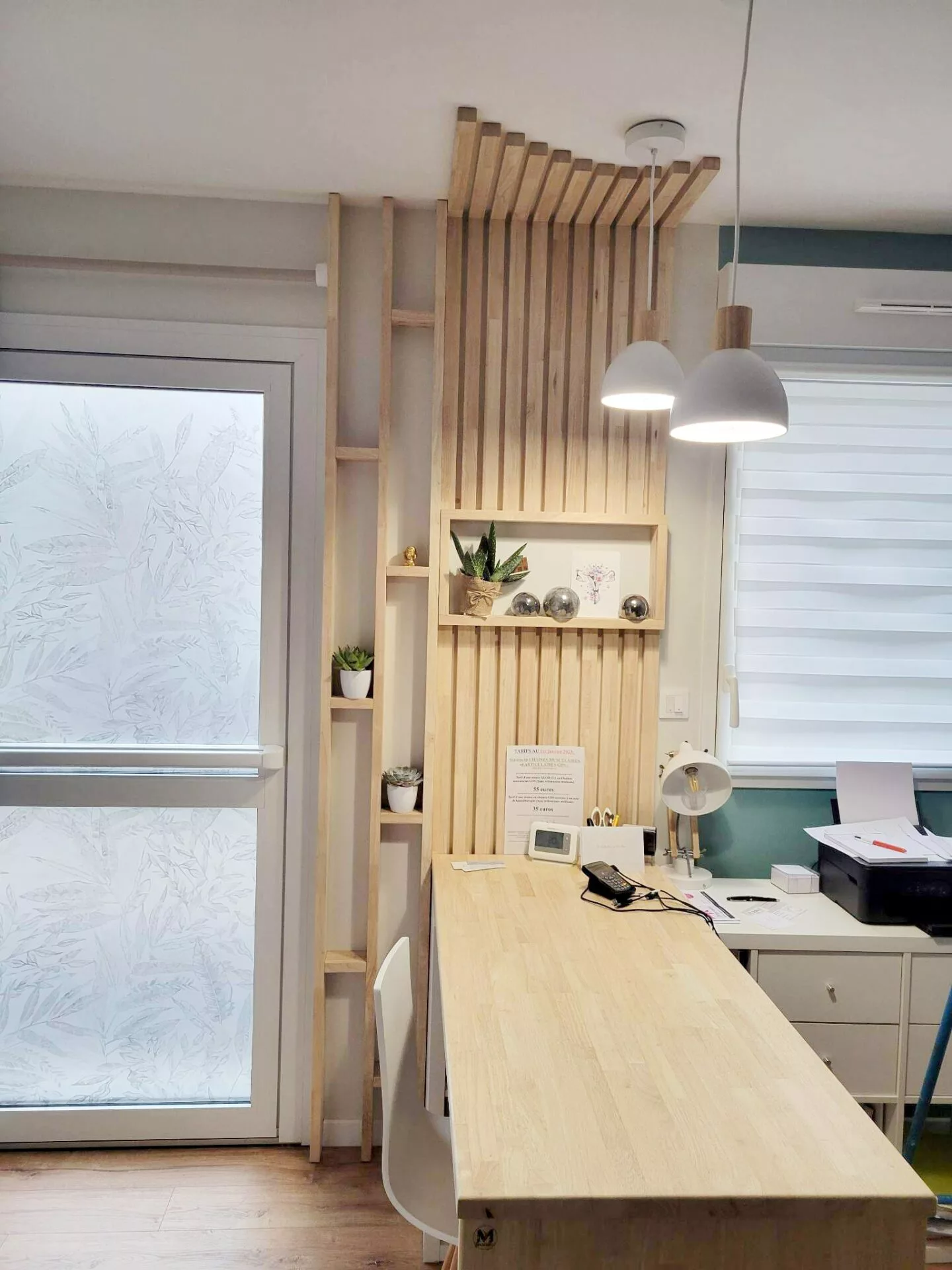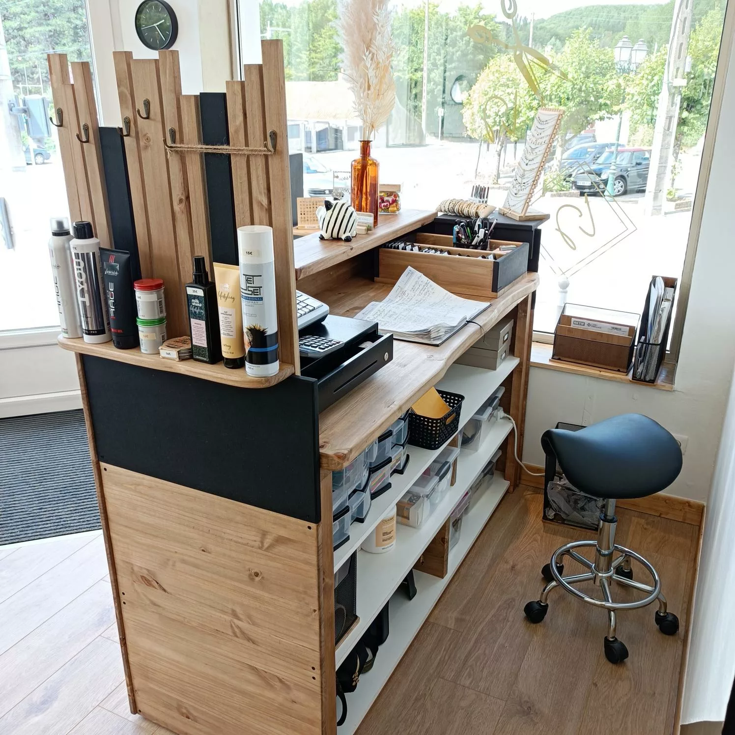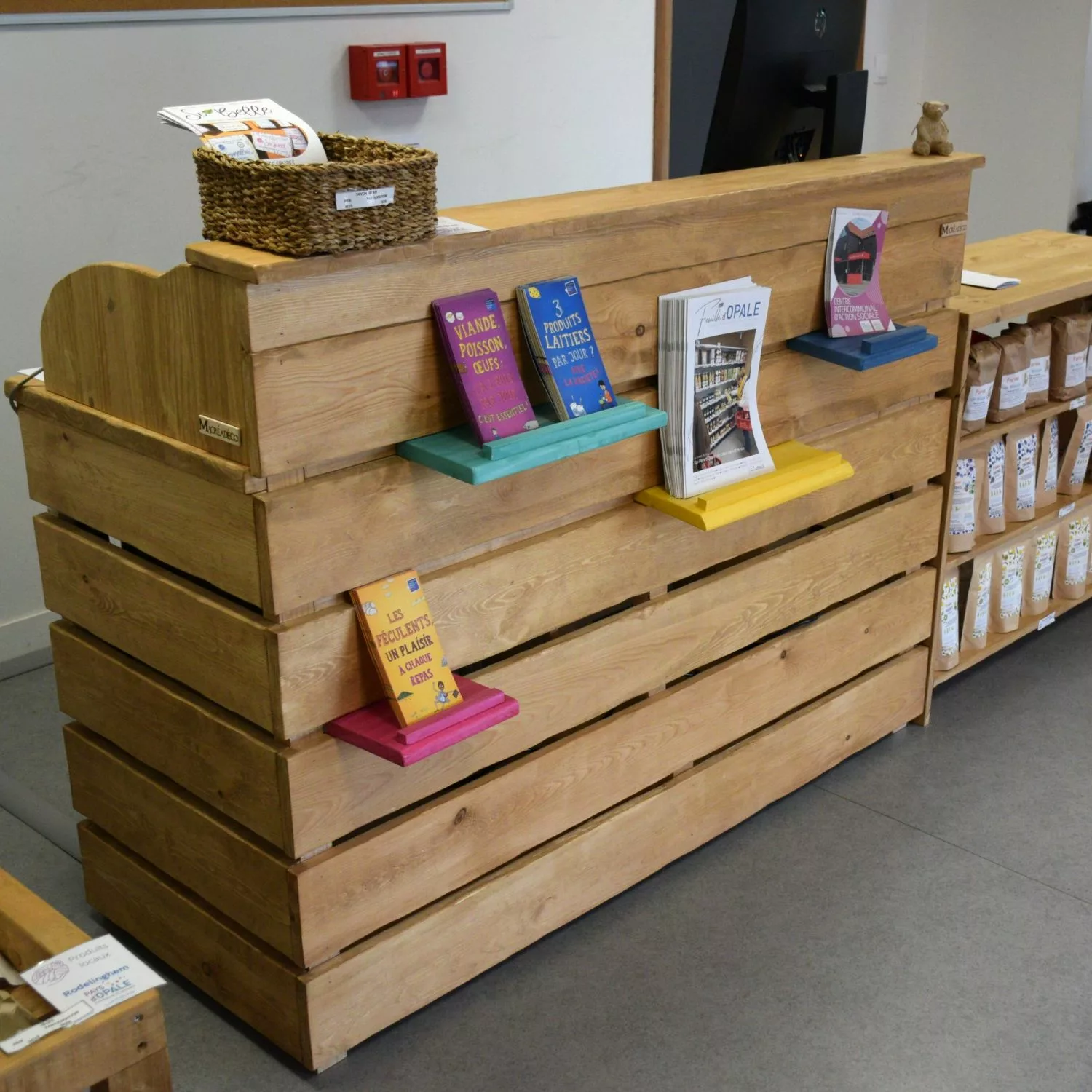 Un meuble unique (banque d’accueil, présentoir, claustra, rangement…) peut déjà transformer l’ambiance d’un lieu.