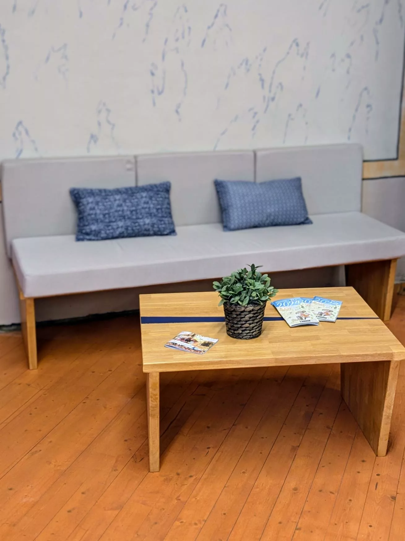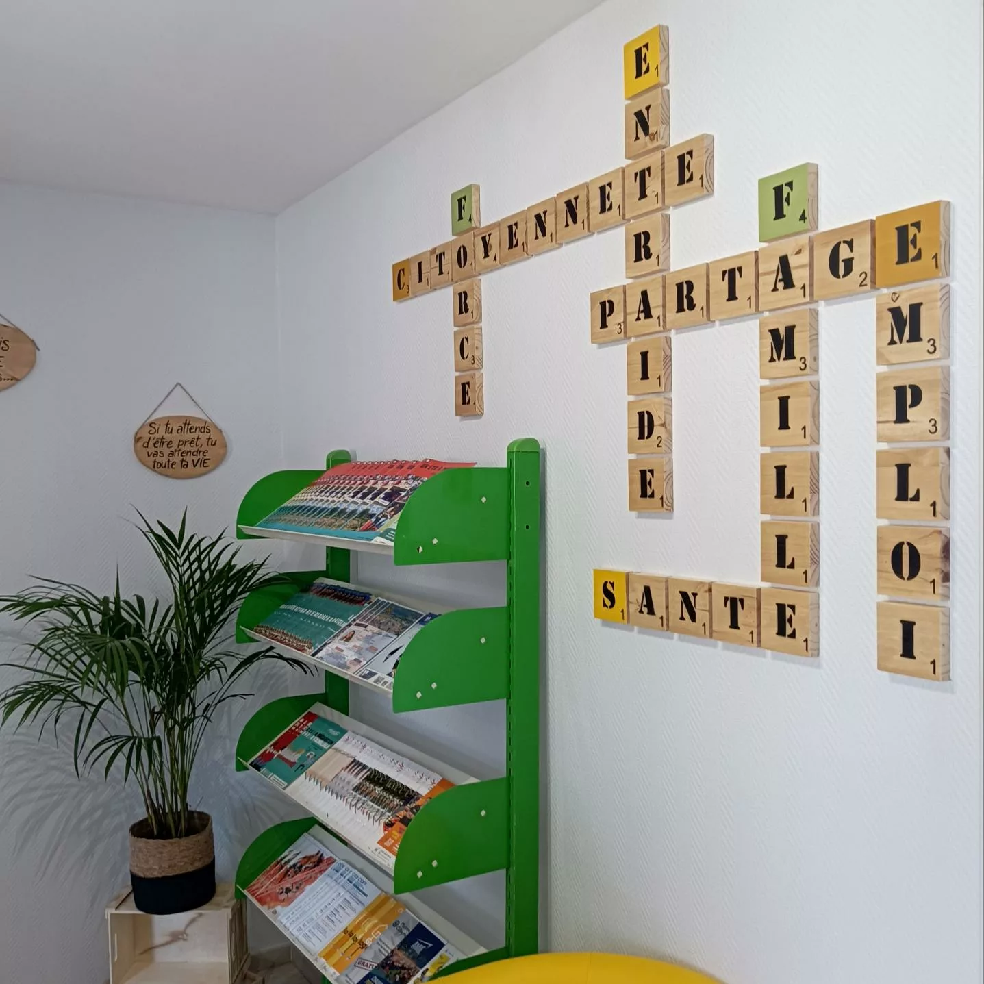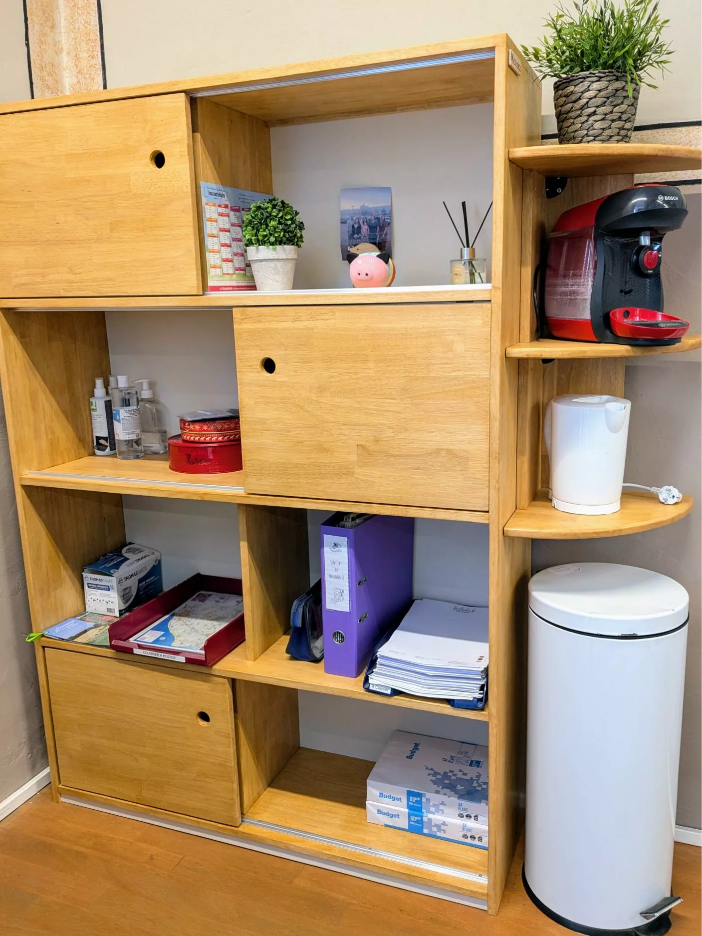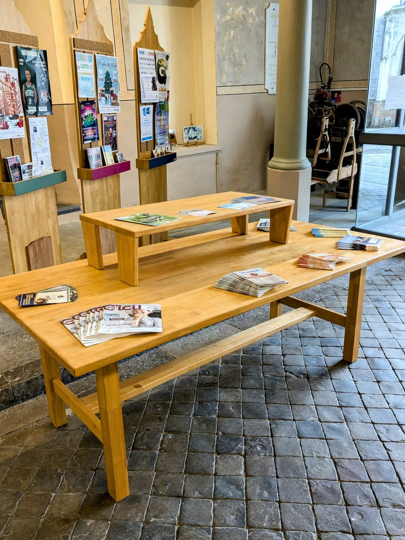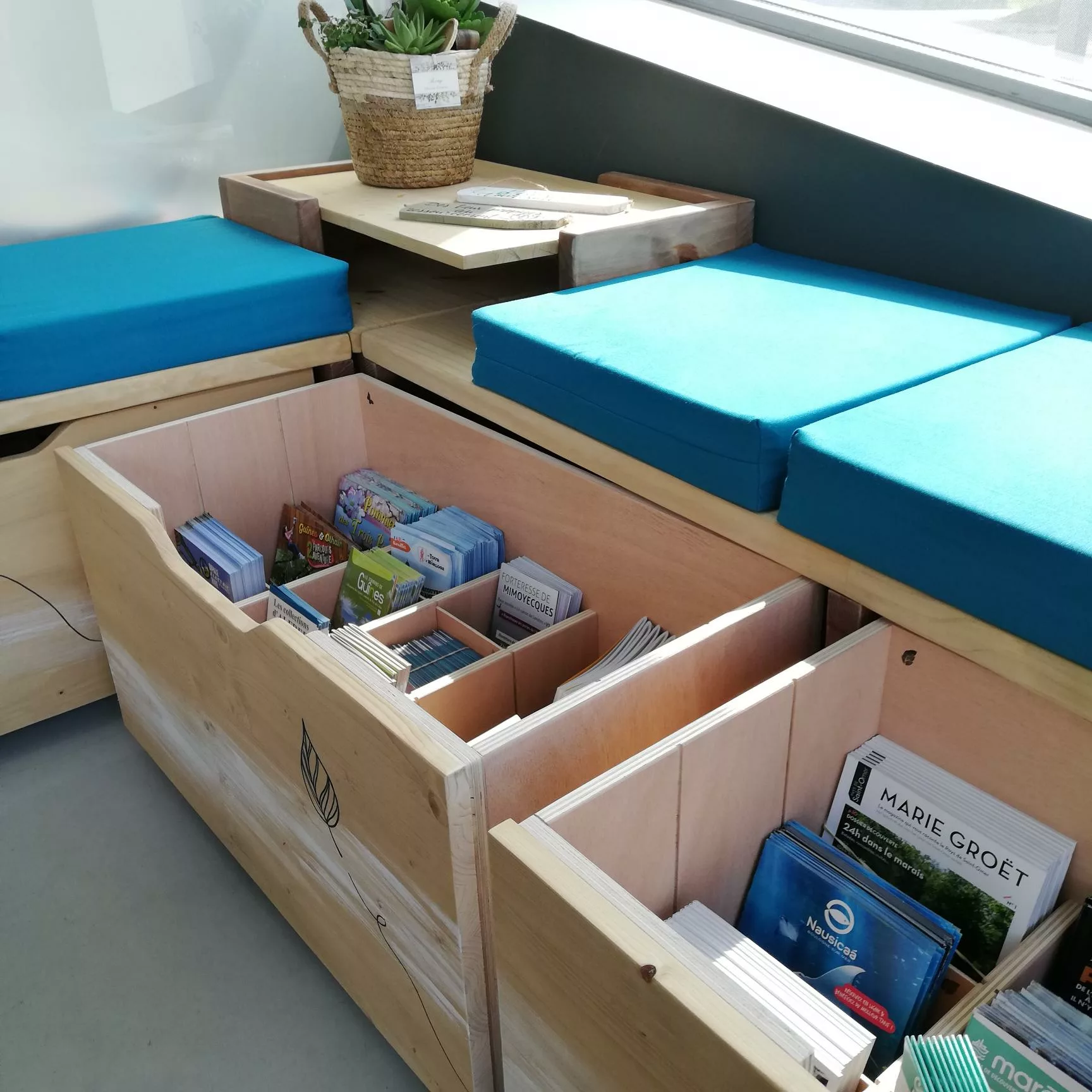 Un meuble unique (banque d’accueil, présentoir, claustra, rangement…) peut déjà transformer l’ambiance d’un lieu.