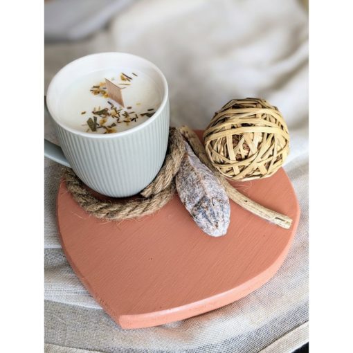 Cette bougie artisanale apportera une touche chaleureuse à votre décoration. Elle est composée d’un socle en bois Macréadéco et d’une bougie artisanale en partenariat avec un entreprise locale ; “So’Belle cosmétiques“.